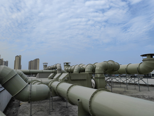 實驗室設計室廢氣排放出 → 吸附性炭過濾水器 → 引新風機 → 排放出